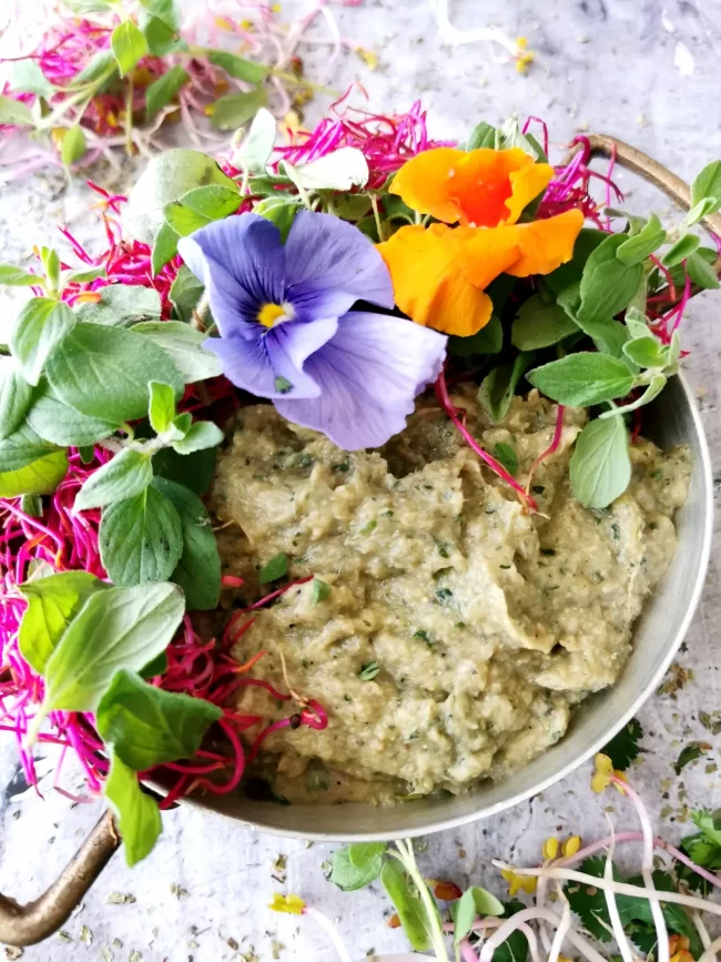 Hummus de Alcauciles, Berenjenas y Ajos Asados